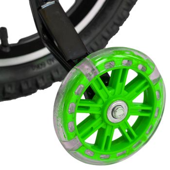 Bicicleta Copii 3-5 Ani, Roti 14 Inch din Magneziu, Frane C-Brake, Roti Ajutatoare cu LED, Carpat Kids C1400A, Cadru Verde cu Design Alb