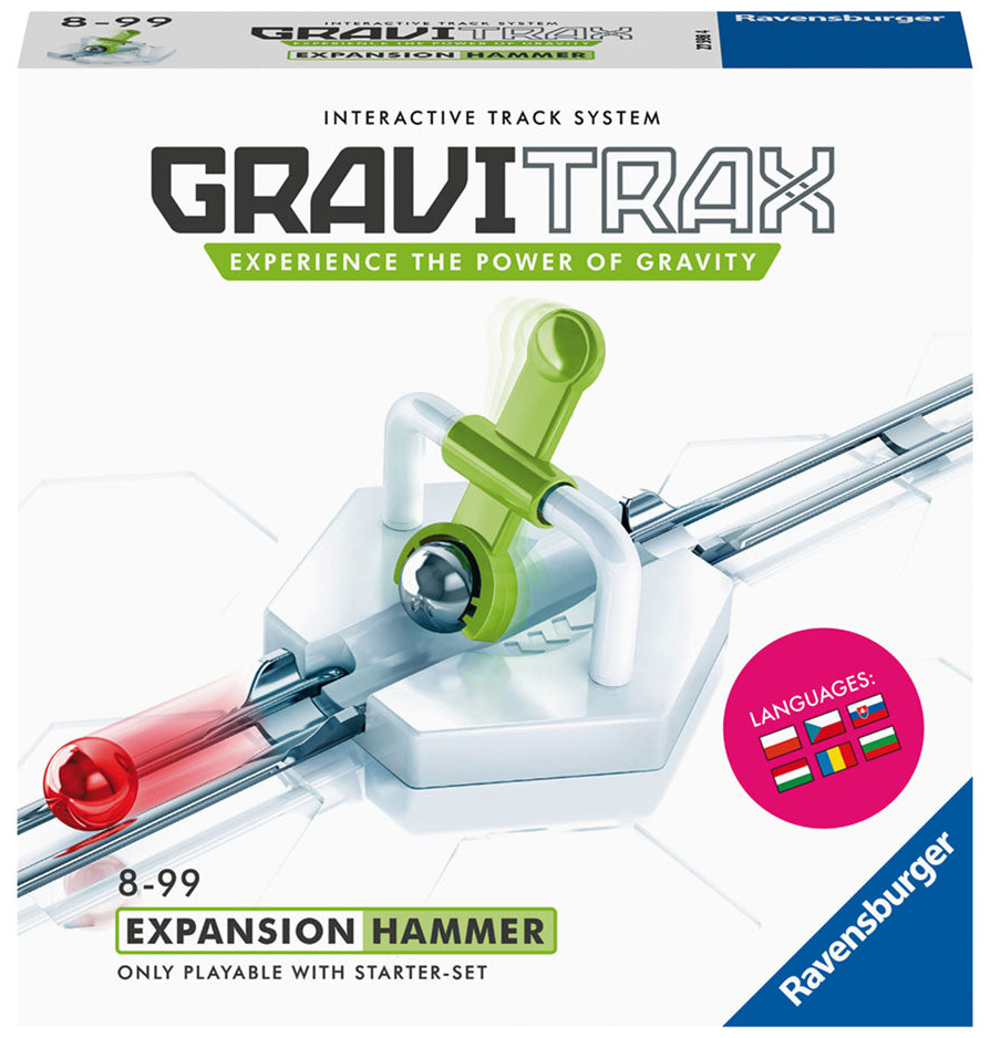 Poate fi jucat numai impreuna cu setul de baza Gravitrax!Joc de constructie Gravitrax Hammer, Ciocan, set de accesorii, multilingv incl. RO. Loveste-ti bila cu ciocanul si propulseaza distractia la urmatorul nivel!Setul Ciocan va adauga o viteza atat de necesara la aspectul pistei. Daca sferele au incetinit pana la un taras, acest ciocan va lovi sfera dandu-i un impuls atat de necesar pentru a finaliza circuitul!Sistemul de pista cu bile Gravitrax este extins la infinit cu accesorii si garanteaza o experienta nelimitata de constructie si joaca.Motivele principale sa alegeti gama Gravitrax:[INOVATIV] Sistemul de pista interactiv Gravitrax va permite sa proiectati, sa va construiti propriile piste de curse si sa experimentati gravitatia, magnetismul, repectiv cinetica.[JUCARIE STEM] Copii cu varstele de peste 8 ani vor putea experimenta jocuri educationale si stiintifice.[COMPATIBIL] Extindeti cu usurinta complexitatea jocului - Toate seturile sunt compatibile si functionale.[IDEE DE CADOU] Gravitrax este un cadou ideal de sarbatori si cu ocazia zilelor de nastere pentru copiii si adultii creativi, curiosi, carora le place sa construiasca.Contine: 1 Ciocan, 1 sina lunga, 2 sine medii, 3 sine scurte, 1 regulament in lb. romana.