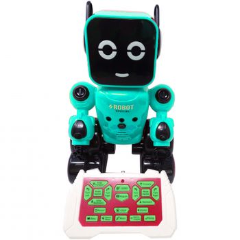 Robot SMART interactiv cu telecomanda si functii multiple CARACTERISTICI: Robot educational care poate inregistra, interactiona vocal cu copiii, canta cantecele pentru copii, spune povesti, are functia de muzica, danseaza, saluta in limba engleza, imita sunete de animale, este programabil si are control prin infrarosu cu telecomanda. Copiii pur si simplu vor adora sa se joace si sa invete alaturi de robotelul FUNCTII MiscareINAINTE/INAPOI (FORWARD/BACKWARD) Intoarcere STANGA/DREAPTA (LEFT/RIGHT) Buton de INREGISTRARE (RECORD). Apasa butonul de "Inregistrare" pentru a incepe inregistrarea, apoi apasa din nou acelasi buton pentru a termina de inregistrat. Buton SUNETE MAGICE (MAGIC SOUNDS) . Apasa butonul "Sunete Magice" pentru a comuta inregistrarea in 3 moduri diferite. Interactiune VOCALA . Dupa inregistrare apasati butonul "Interactiune vocala activata" si ochii robotului vor deveni rosii. Dacabatidin palme o singura data se va reda inregistrarea si se vor schimba sunetele (3 sunete magice sunt ficomutate la randul lor, iar cand se aplauda, ochii robotului se schimba de la rosu la galben si apoi devin rosii din nou). Daca bati din palme de 2 ori, robotul canta si danseaza aleatoriu (cand se aplauda, ochii robotului se schimba de la rosu la galben si apoi devin rosii din nou). ButonVOLUME +/-. Robotul este prevazut cu 5 niveluri de volum. ModDEMO . Functii demonstrative la livrare. CANTECE COPII . cantece pentru copii. SALUTARI . Diferite tipuri de salut in limba engleza. MUZICA . melodii dance. POVESTI . povesti pentru copii. CANTECE . cantece pentru copii. Pachetul contine : 1 x Robot Smart 1 x Acumulator robot 3.7 V 1 x Telecomanda 1 x Cablu USB incarcare 1 x Manual de utilizare